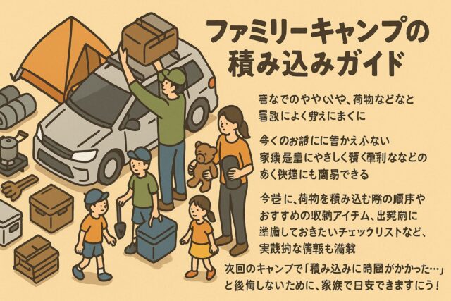 次回のキャンプで「積み込みに時間がかかった…」と後悔しないために、この記事を参考にして家族全員が笑顔で出発できる準備を整えましょう!