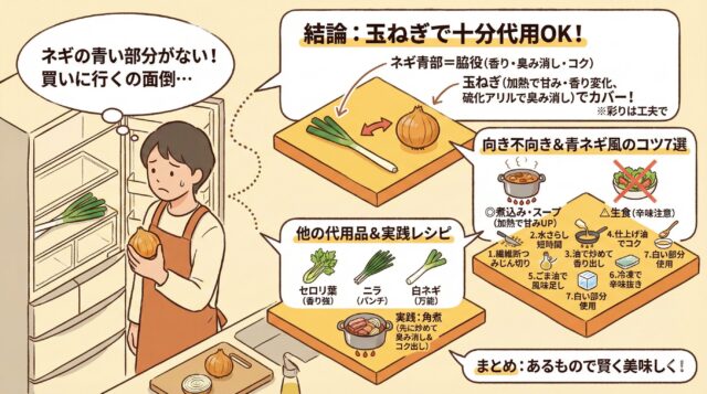 ネギの青い部分がない!玉ねぎで代用できる?理由と使い方を徹底解説
