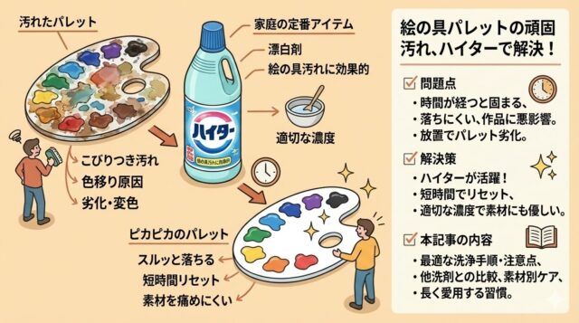 絵の具パレットの汚れ、ハイターで落ちる?正しい洗い方と注意点
