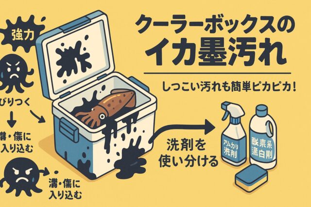 クーラーボックスのイカ墨汚れを簡単に落とす方法