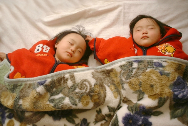 - Q:双子を1台のベビーベッドで寝かせても大丈夫?