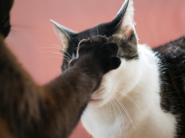 猫同士は視線が合うだけでも緊張感が高まりやすく、特に初対面の段階や、まだ上下関係・距離感が定まっていない時期は、それだけで強いストレスを感じてしまうことがあります。