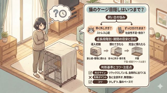 結論から言うと、ケージの目隠しに明確な「終了期限」はありません。