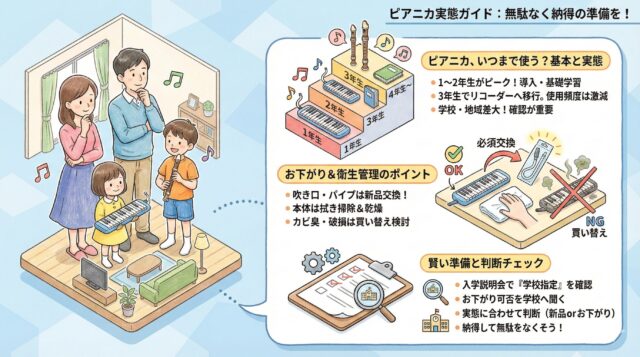 入学準備で購入したピアニカ。「小学校でいつまで使うの?」「3年生以降はもう不要なのでは?」と疑問に感じる保護者は多いのではないでしょうか。