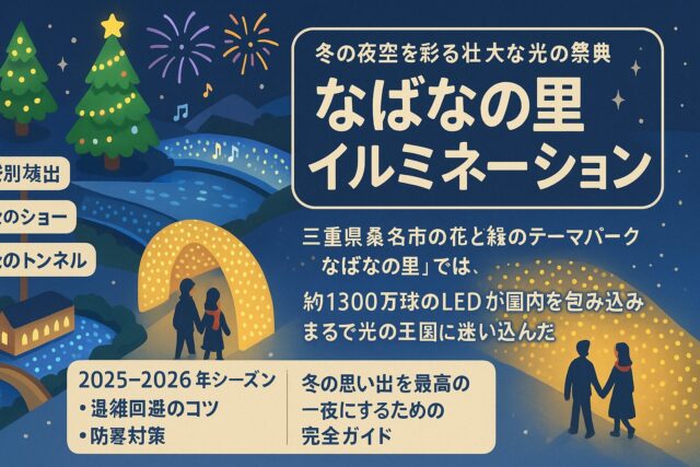 三重県桑名市に位置する「なばなの里」は、季節ごとに美しい花々が咲き誇る自然豊かな観光地ですが、冬の訪れとともにその表情をがらりと変え、園内全体が光で包まれる壮大なイルミネーションの舞台へと変貌します。