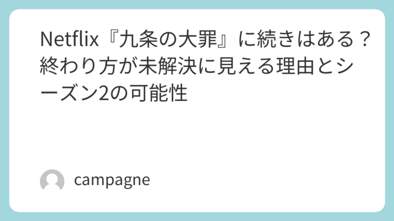 Netflix『九条の大罪』を見終わったあと、「これで終わり?」「まだ何も解決していない気がする」と感じた人は少なくありません。実際、本作はスッキリ完結するタイプではなく、不穏さや未解決感を残しやすい構成になっています。そこでこの記事では、終わり方がモヤモヤする理由と、シーズン2の可能性について、現時点で確認できる情報をもとに整理していきます。