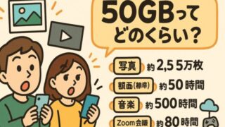 雑学 50GBってどれくらい使える?写真・動画・テザリングの目安を徹底解説 スマートフォンやタブレット、ノートPCなど、さまざまなデバイスを日常的に活用する現代において、「50GBの容量って実際どのくらい使えるの?」という疑問を持つ方も多いのではないでしょうか。本記事では、50GBでできることをわかりやすく解説し、... 雑学
