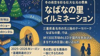 冬の夜空を彩る壮大な光の祭典――それが「なばなの里イルミネーション」です。三重県桑名市の花と緑のテーマパーク「なばなの里」では、毎年10月から翌年5月にかけて、約1300万球のLEDが園内を包み込み、まるで光の王国に迷い込んだような幻想的な...