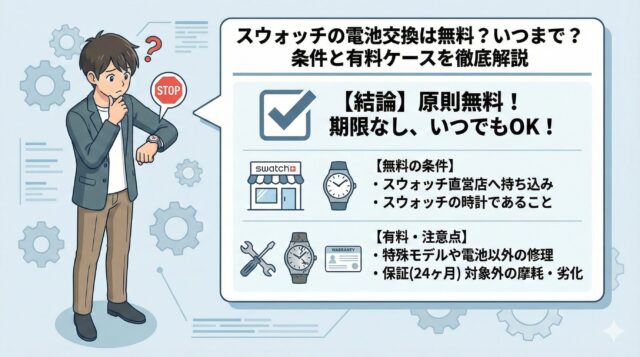 スウォッチの電池交換は無料?いつまで適用される?条件と有料ケースを徹底解説